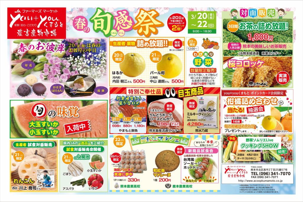 3月20日(金・祝)~22日(日)の3日間、『春の旬感祭』を開催いたします。